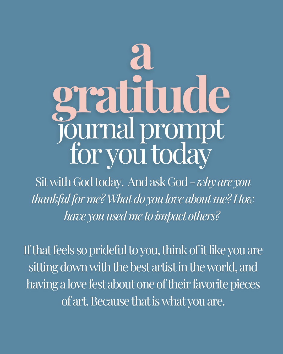 Option three: Sit with God today. There are so many reasons to be thankful for God, but - at the risk of activating some people’s anxiety - try something a little different this thanksgiving. Sit with God and ask God - why are you thankful for me? What do you love about me? How have you used me to impact others? If that feels so prideful to you, think of it like you are sitting down with the best artist in the world, and having a love fest about one of their favorite pieces of art. Because that is what you are.